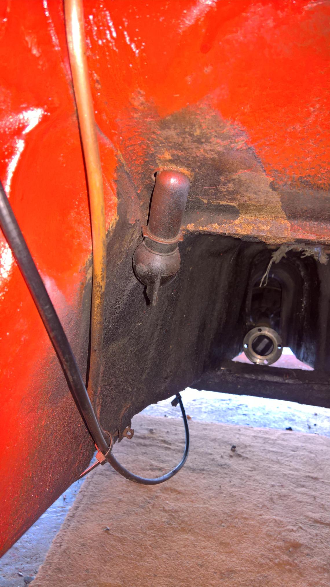Ever wondered what toms knob looks like? I thought I’d take a picture of it whilst the engine was out. This is where the drain from the vent in front of the windscreen comes out – so long as its not blocked!. It is that shape to let water out but to prevent engine fumes being sucked in.