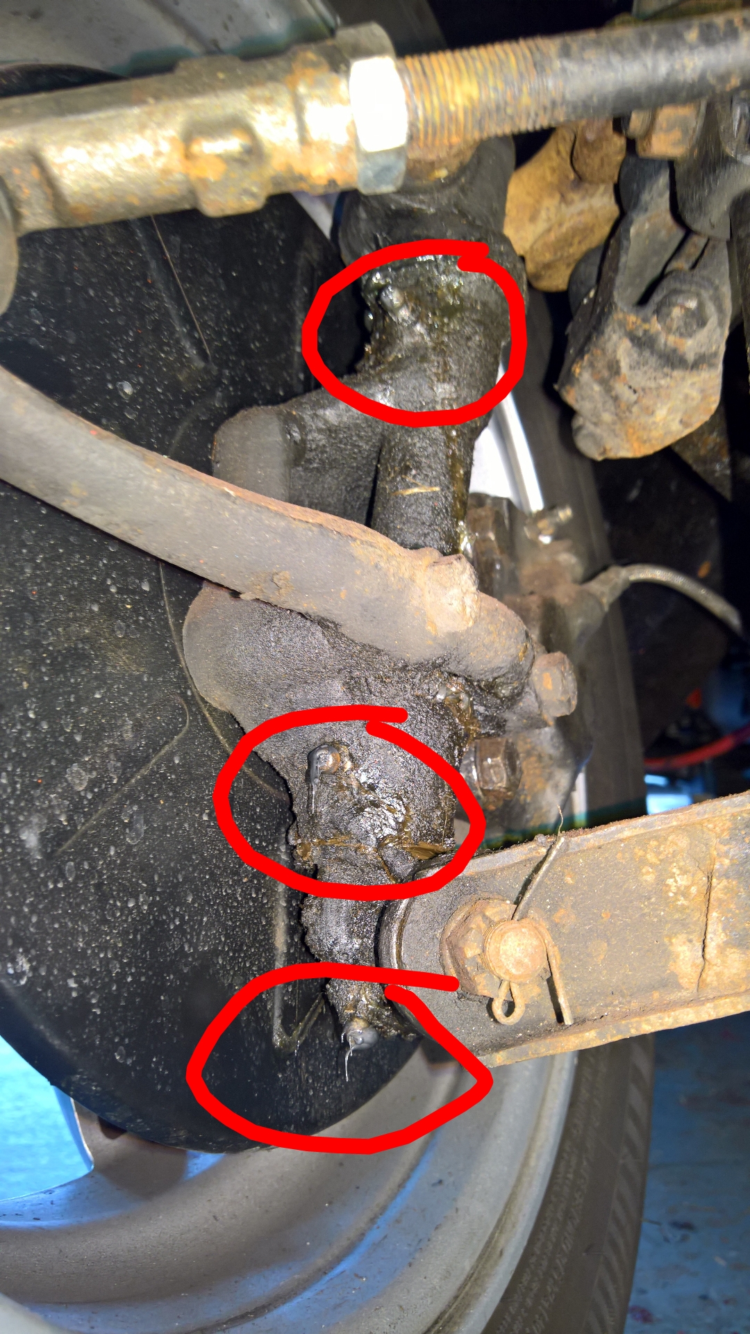 Had the front wheels off the ground today to check for play and all was good. Steering turned easily and no play up/down or side to side. Took the opportunity to grease them at same time. 3 nipples each side but on the near side one of them is on the other side of the wheel.