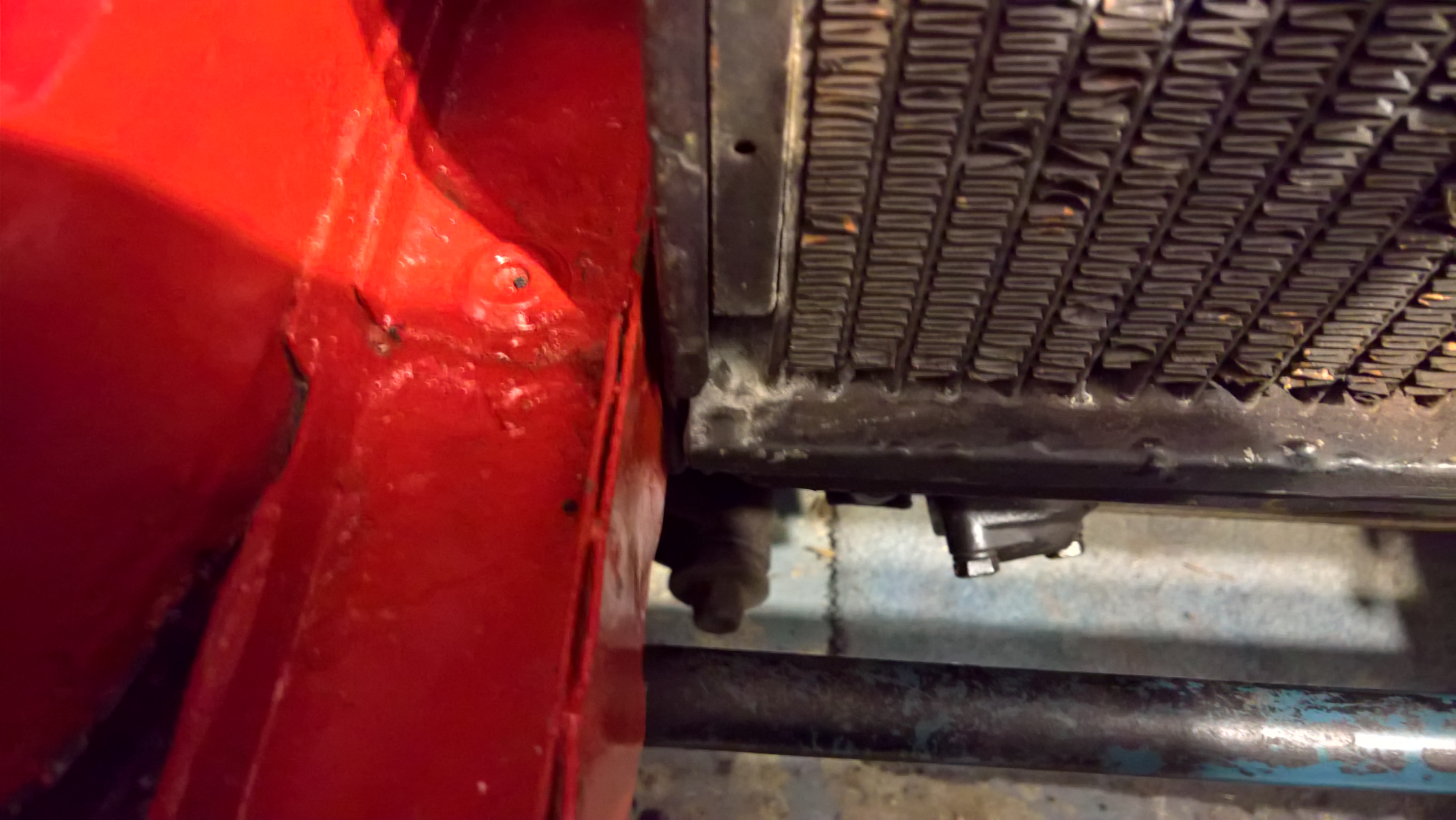 I have been watching this white patch in the corner of the radiator carefully as it is seepage and a sign of a small leak in the radiator. I put some radweld in about a year ago which seemed to cure it. Since having the engine out and refilled the cooling system with just water the white patch had reappeared.