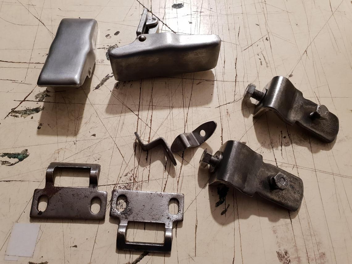 Took me days of careful easing the bolts holding the fixings in place and plenty of WD40 to remove the fittings without shearing the well rusted bolts. The fittings themselves were not much better but a couple of hours with a wire brush has given them a nice shine.