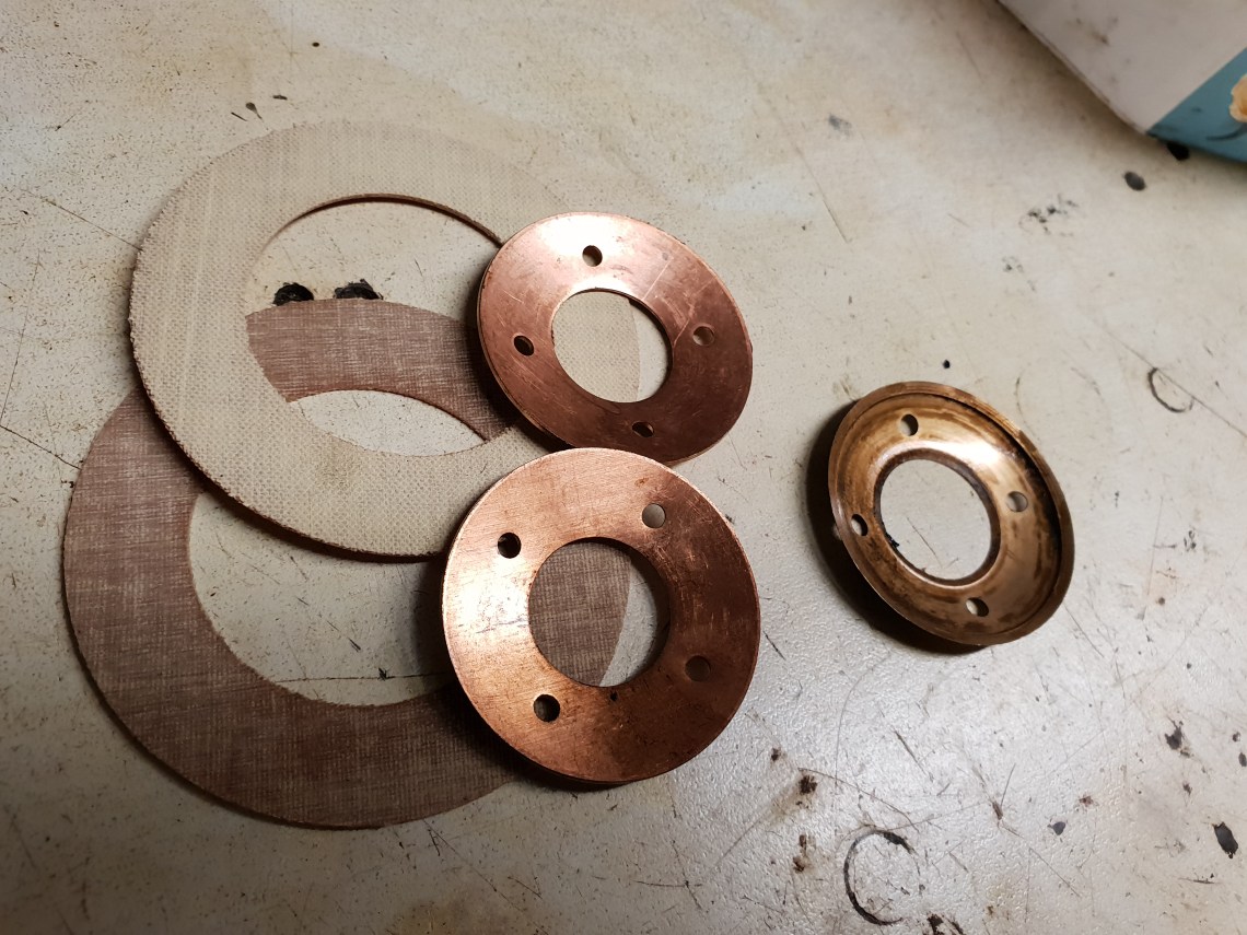 Got the new kit in place – the only piece that was still in existence to remove was a wafer thin copper washer. No sign of any fibre washers or the other copper washer.