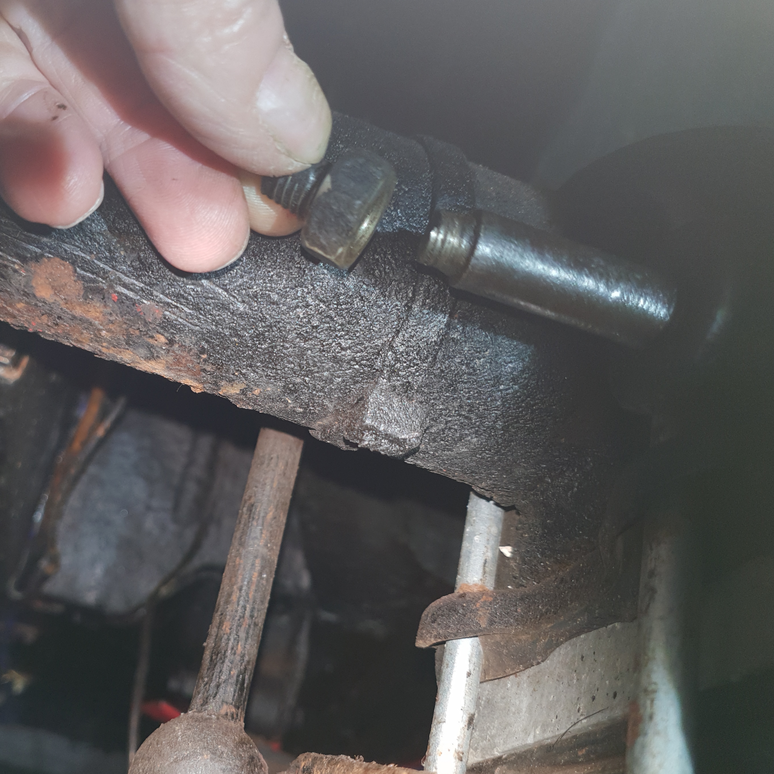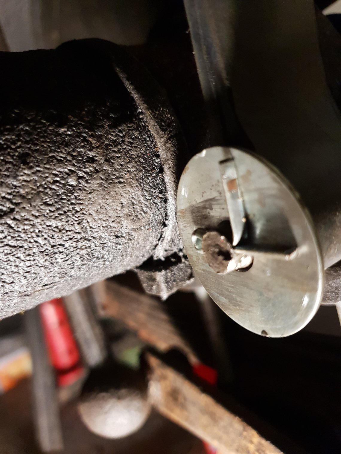 As soon as I tried undoing the nut holding the strap onto the axle it just “dropped” off!! It looks as though the nut with a bit of stud screwed in it had been fixed onto the last thread of the axle stud. It had been made to look as if the nut was well threaded onto the stud!!