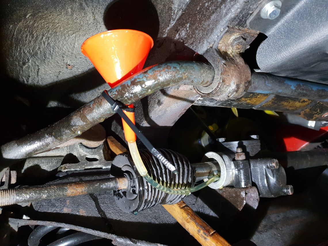 Eventually i got near enough about half a pint of EP90 oil into the rack and refitted the gaitor.