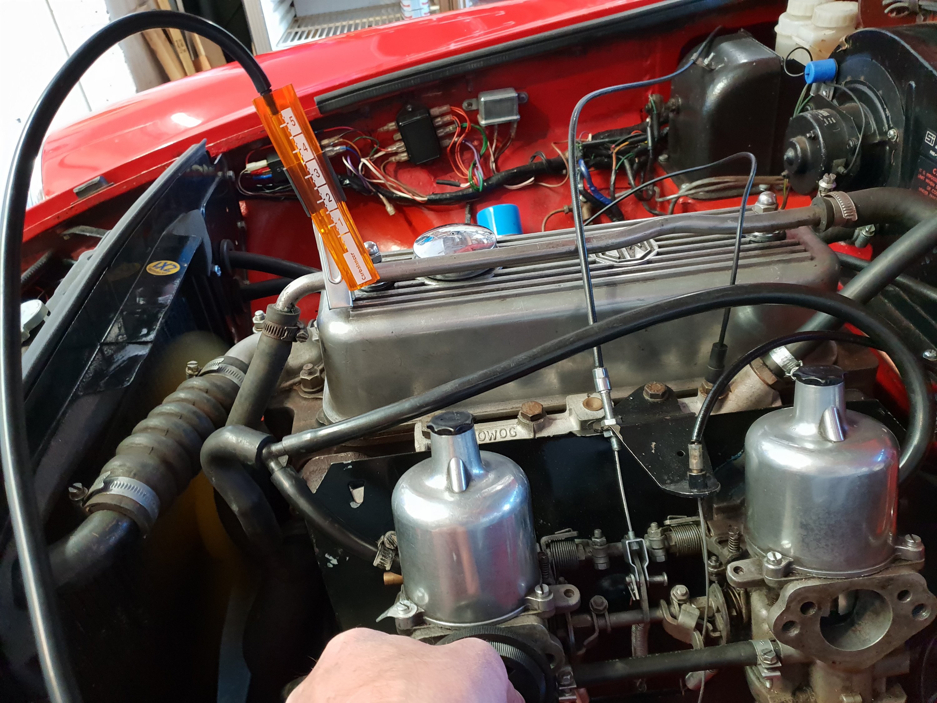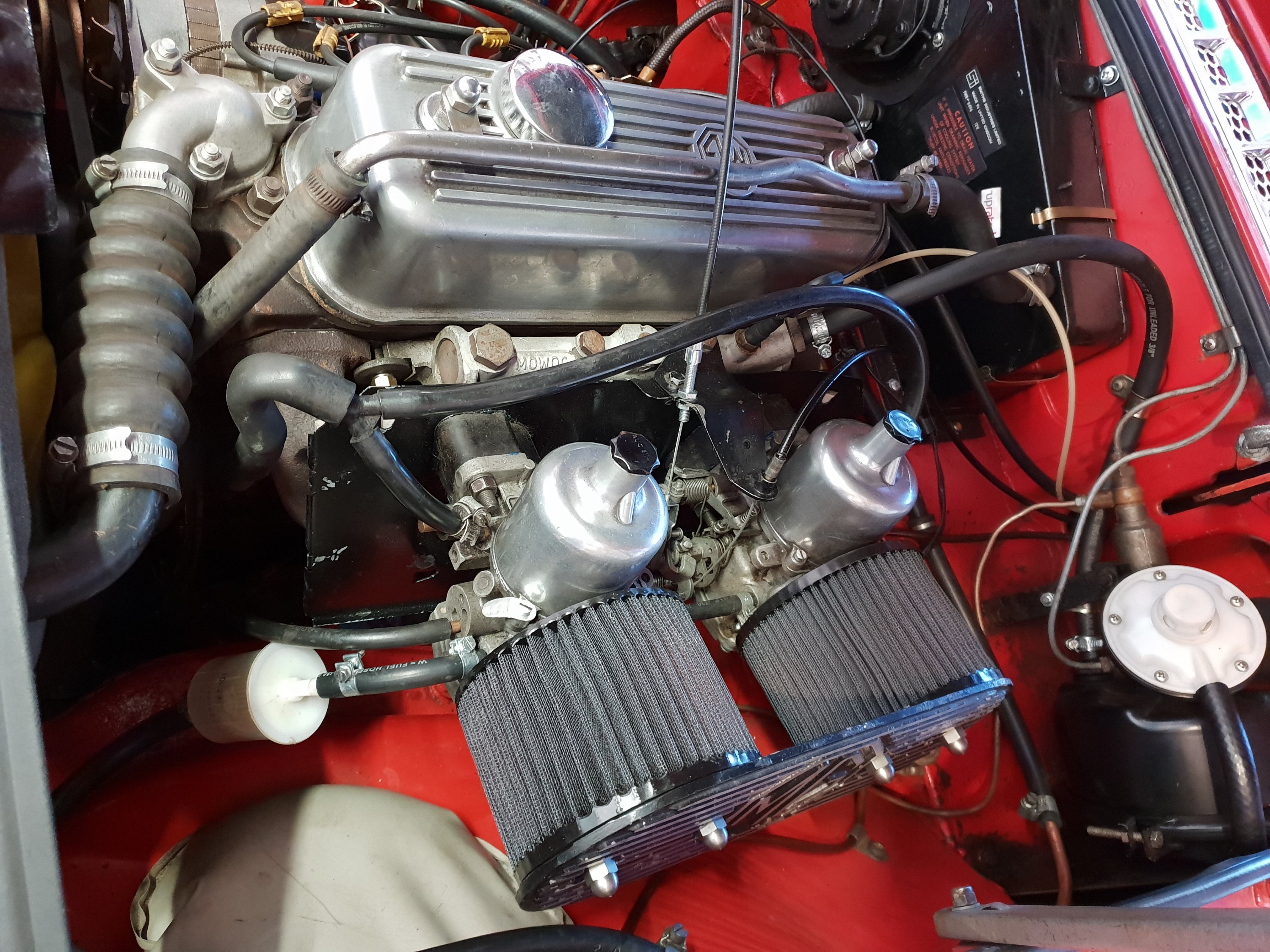 I had been running on a pair of early HIF4 carbs – AUD616 to test out the benefits of ported distributor advance. They certainly give a more even tickover due to being a more retarded spark. But the engine – just recently – was not running well so thought i would refit the original FZX1001 carbs. There was no difference and the problem later turned out to be a failing fuel pump. I decided not to refit the AUD616 carbs for the time being since i had got the originals all set and balanced.