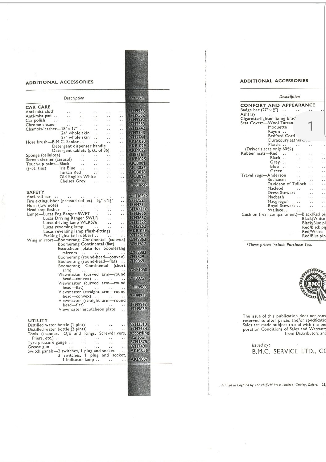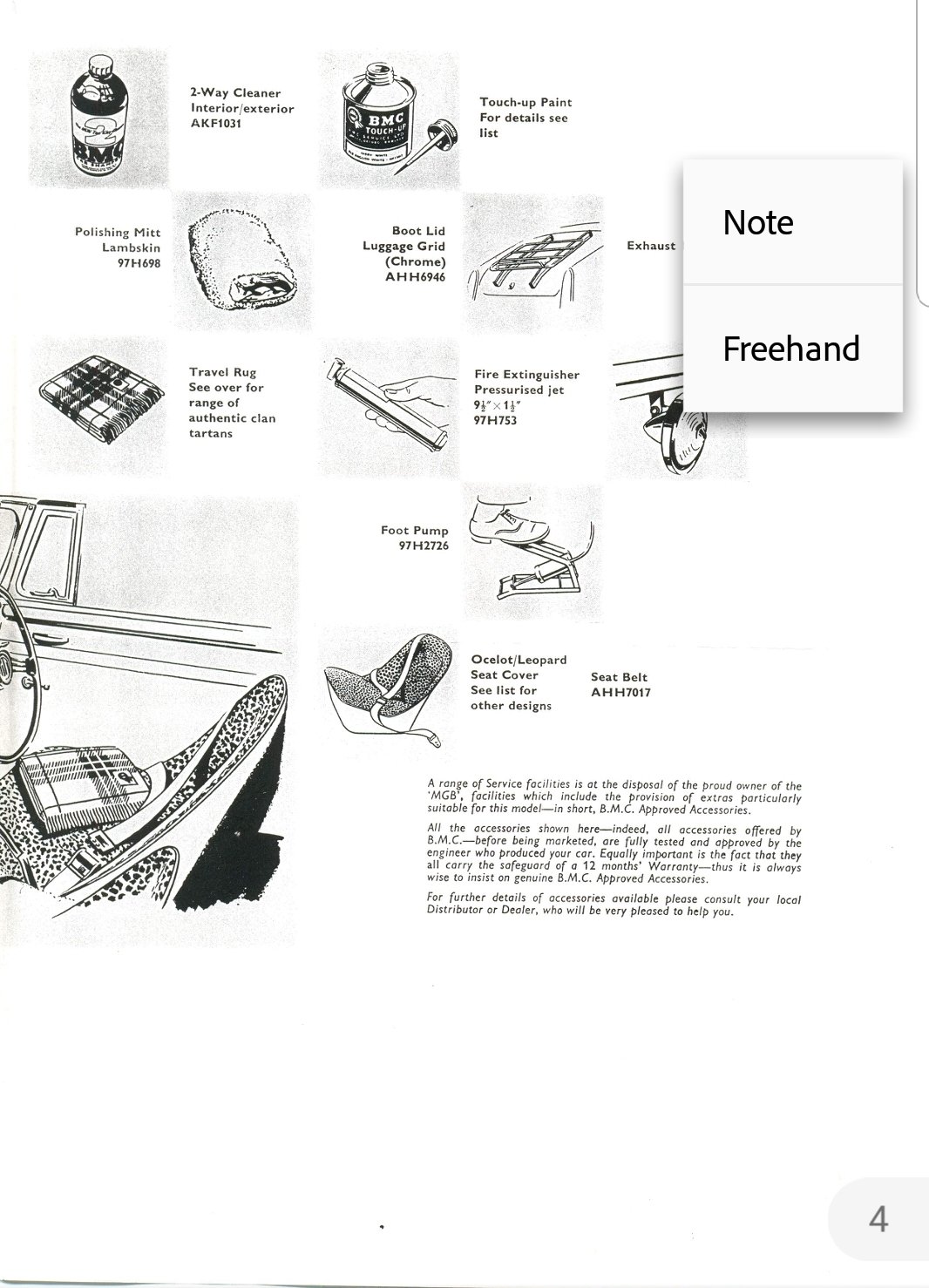 Some of the official accessories available for the MGB when it was first launched in 1962.