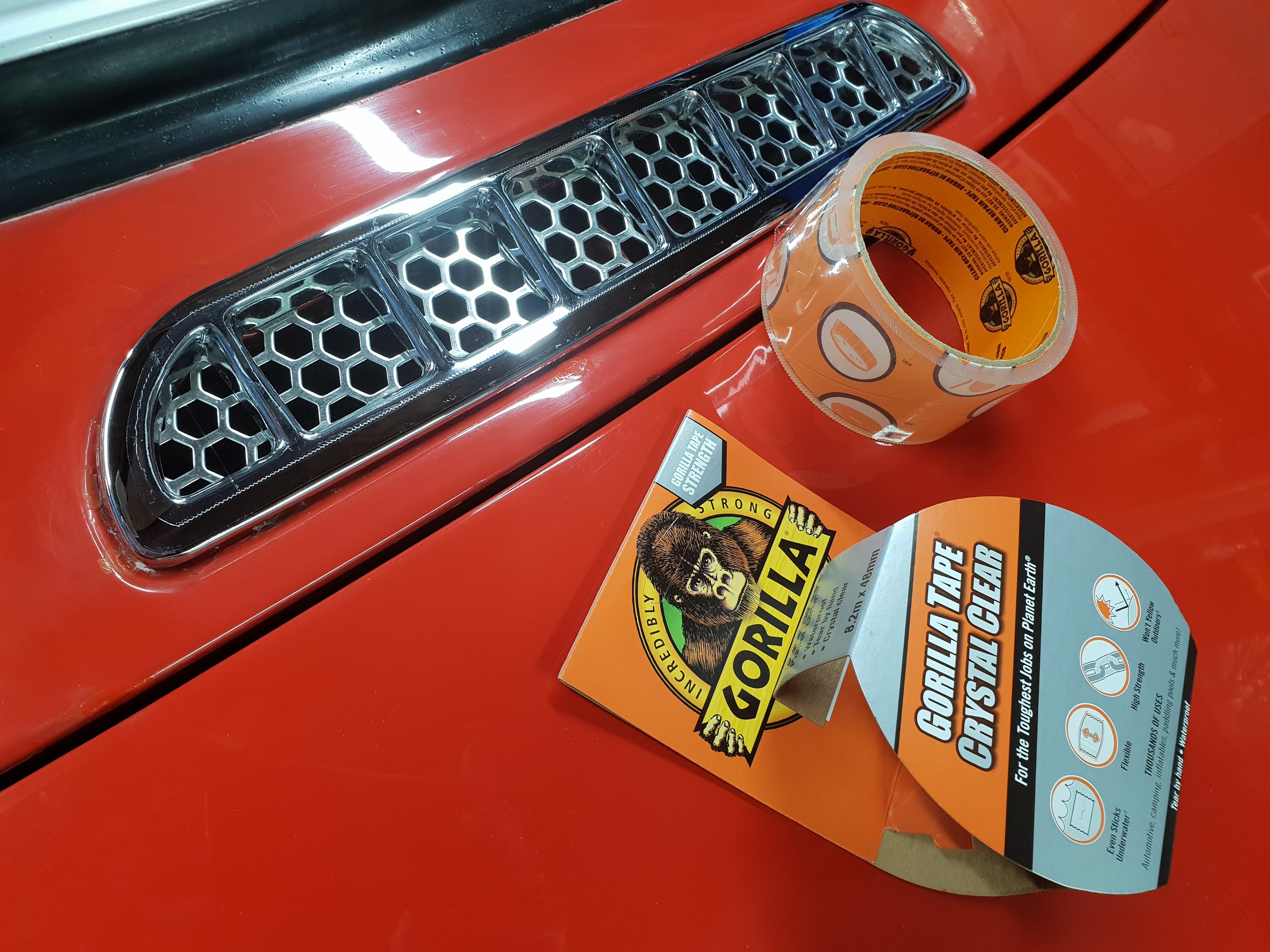 A simple and easily reversible mod is to tape over the air vent – the one in front of the windscreen. I used clear tape but you can use any colour of your choice and then trim off any excess.