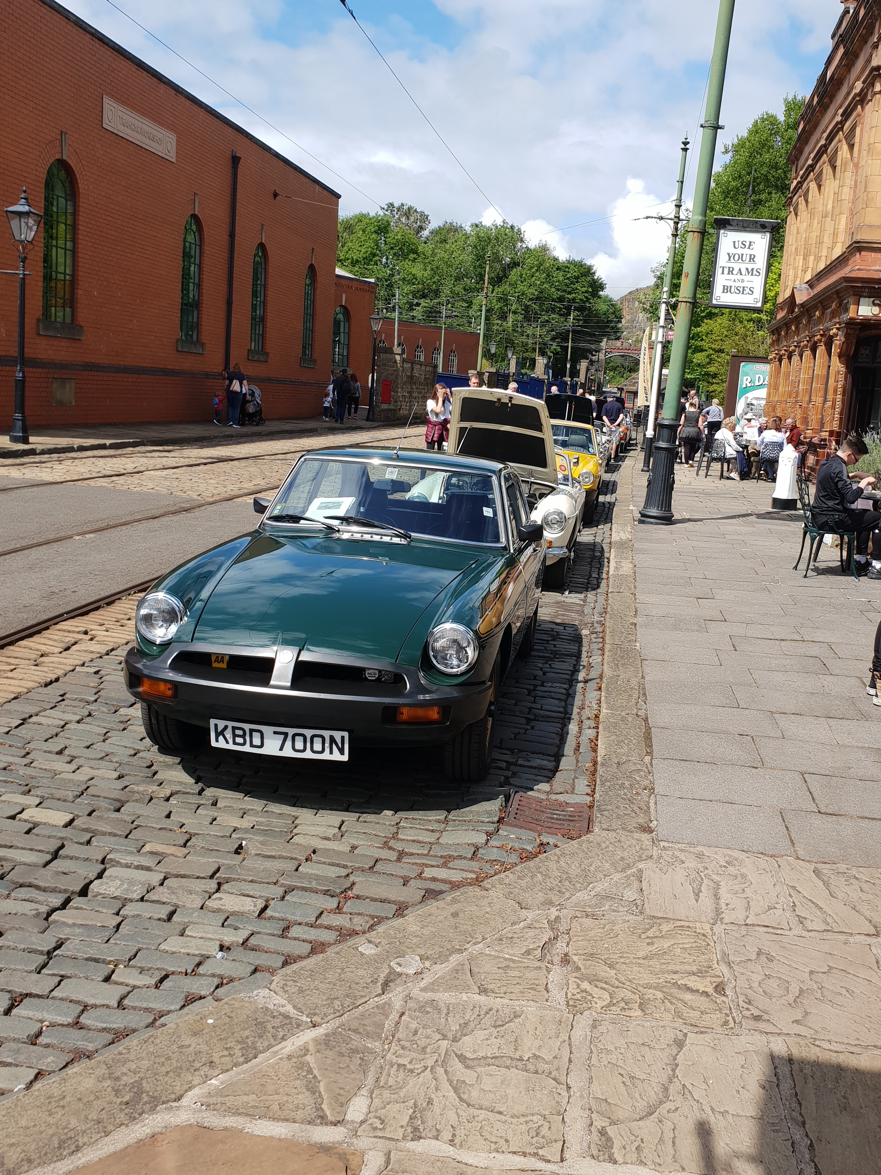 A great day out at the Crich Tramway Museum organised by the MGB Register and the Crich Museum. Arrived about 9.30am booked in (driver free just the passenger pays for entry). Soon we were guided down into the tramway village and to parking positions for the day.